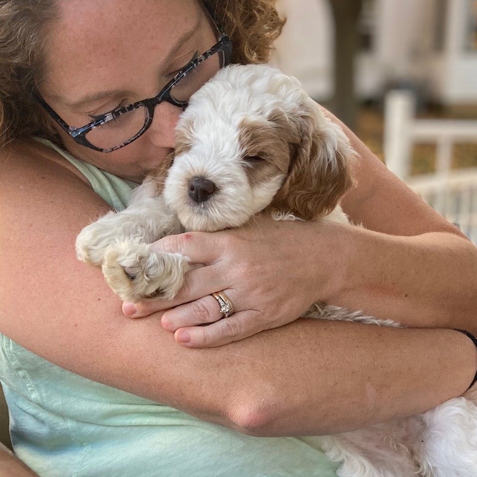 KN: My husband was not fond of dogs and one reason for this was because he was born with terrible asthma. We did a lot of research on dogs, and found that dogs that have hair, like the Australian Labradoodle, are less likely to cause allergic responses in people with allergies and asthma. Some people like to say that Doodles are hypoallergenic, however, this isn't true. No dog is truly hypoallergenic, but these dogs have been proven to cause less reactions in people who struggle with allergies and asthma. The other reason I chose the Australian Labradoodle was because they were breed in Australia in the 1980’s for the specific purpose of being used as therapy dogs. They have established, multigenerational lines, and we have a breed standard according to the American Labradoodle Association of America. In addition to being a good match for people with allergies, they're highly intelligent, intuitive, outgoing, and very easy to train.