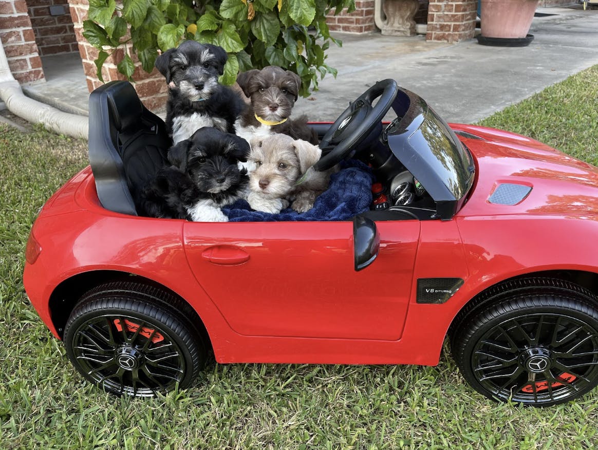 I stumbled into the world of dog breeding while looking for a job. With my background knowledge of animals, I was immediately hired to work for one of the most reputable Schnauzer breeders in the country. I worked my way up to Master Kennel Manager within a few months. I was blessed with my first Schnauzer just two months after I started working for the breeder because of all of my hard work. I knew from that moment that I would become a great breeder someday. I can remember the joy in my heart when Xaron became a daddy for the first time. I quickly grew to own six dogs while I continued my apprenticeship for six years. I was able to work and breed my dogs at the same time. Who doesn’t love taking your dogs to work with you?