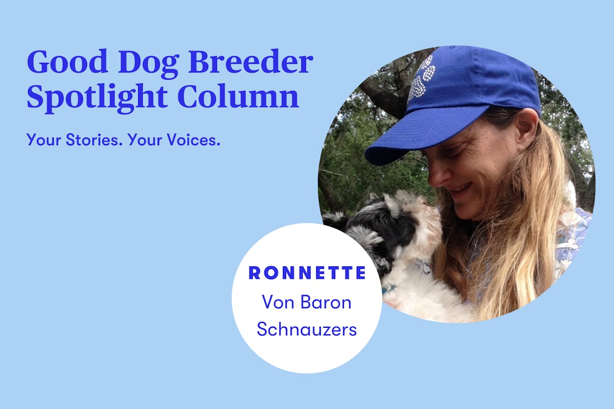 We’re so excited to introduce you to this month’s Good Breeder columnist, Ronnette Davis of Von Baron Schnauzers.