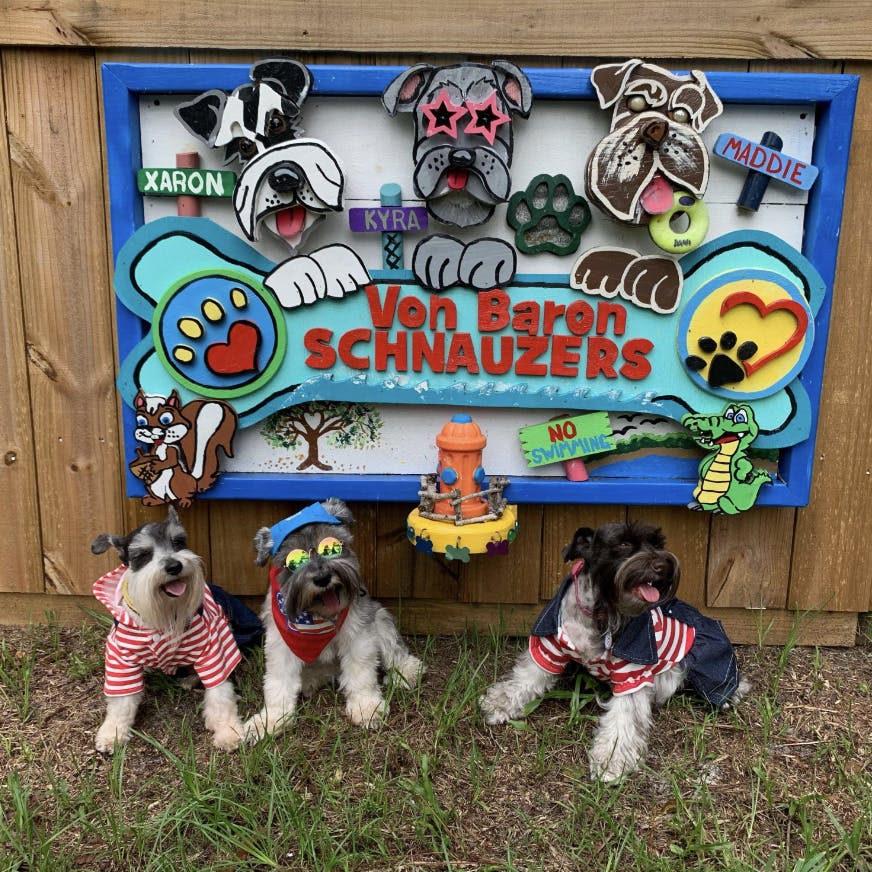 I began looking for a way to go out on my own. I found Good Dog and was extremely excited that I was approved to have my kennel listed. So, at that point, I thought to myself "Hmmm what would be a good name?" Von Baron Schnauzers of course! Xaron Von Baron started my love for the breed. Who knew back that back in 2015 when he was gifted to me, that I would end up naming my very own kennel named after him. After all, Von Baron means "the noble one."