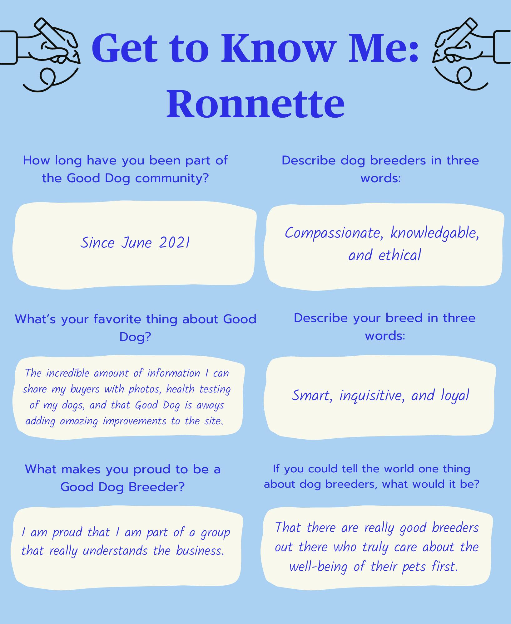 A lifelong love of animals and a chance encounter on a job search led Good Breeder Ronnette Davis to establish her own breeding program.