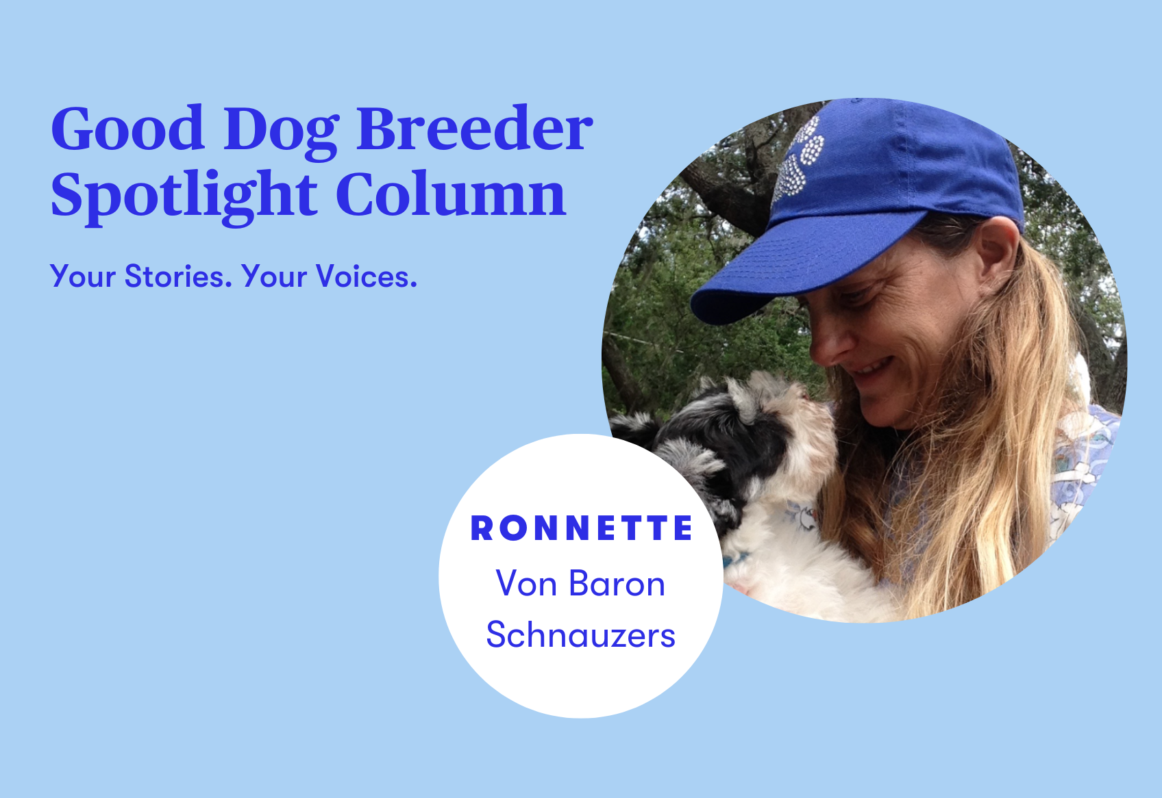 We’re so excited to introduce you to this month’s Good Breeder columnist, Ronnette Davis of Von Baron Schnauzers.