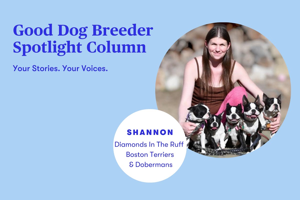 We’re so excited to introduce you to this month’s Good Breeder columnist, Shannon Cychosz of Diamonds In The Ruff Boston Terriers & Dobermans