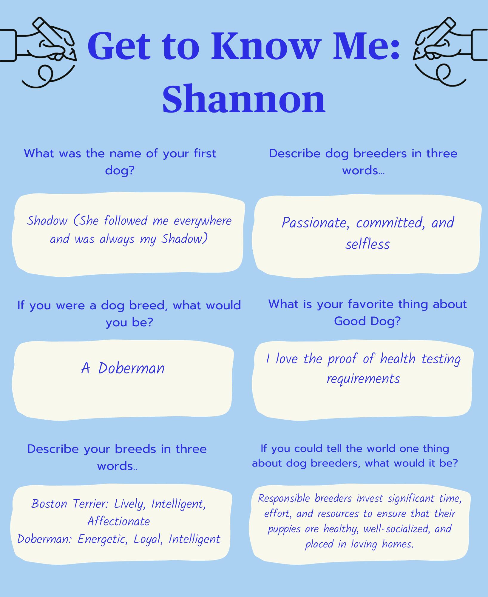 Hi, my name is Shannon, and I'm the breeder behind Diamonds In The Ruff Boston Terriers & Dobermans. Here’s a little bit about me...