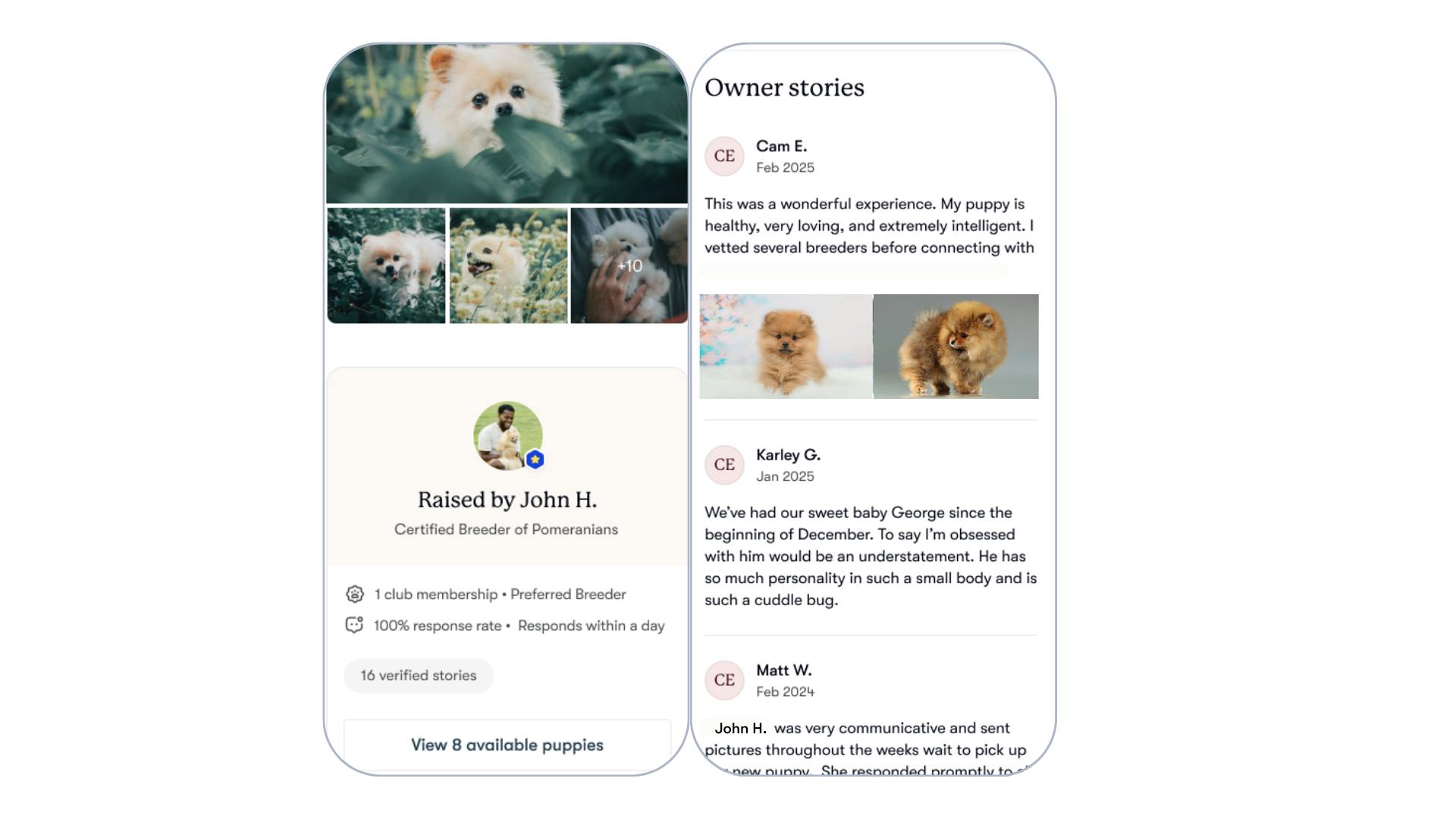 Collect Verified Owner Stories to build trust with potential buyers and attract quality homes for your puppies.