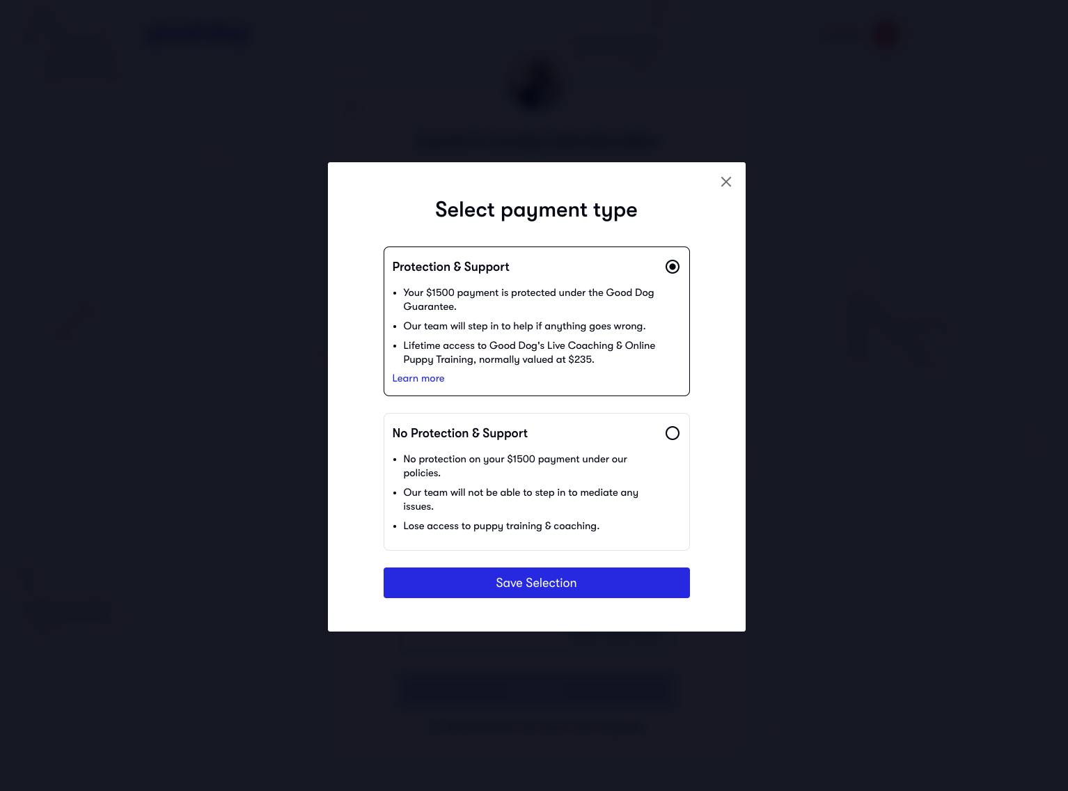 Your buyer also has the option to choose whether they would like to complete their payment with Protection and Support: