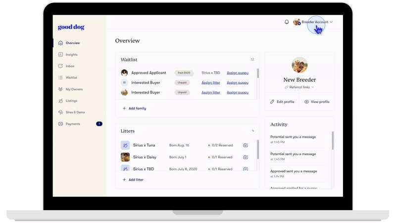 Get help with the Good Breeder application process, setting up your breeder profile, payments, and more.