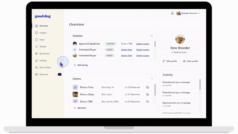 - Add puppy photos. Puppies with photos can get up to 60% more applicants than those without — and they show up higher in our search results.