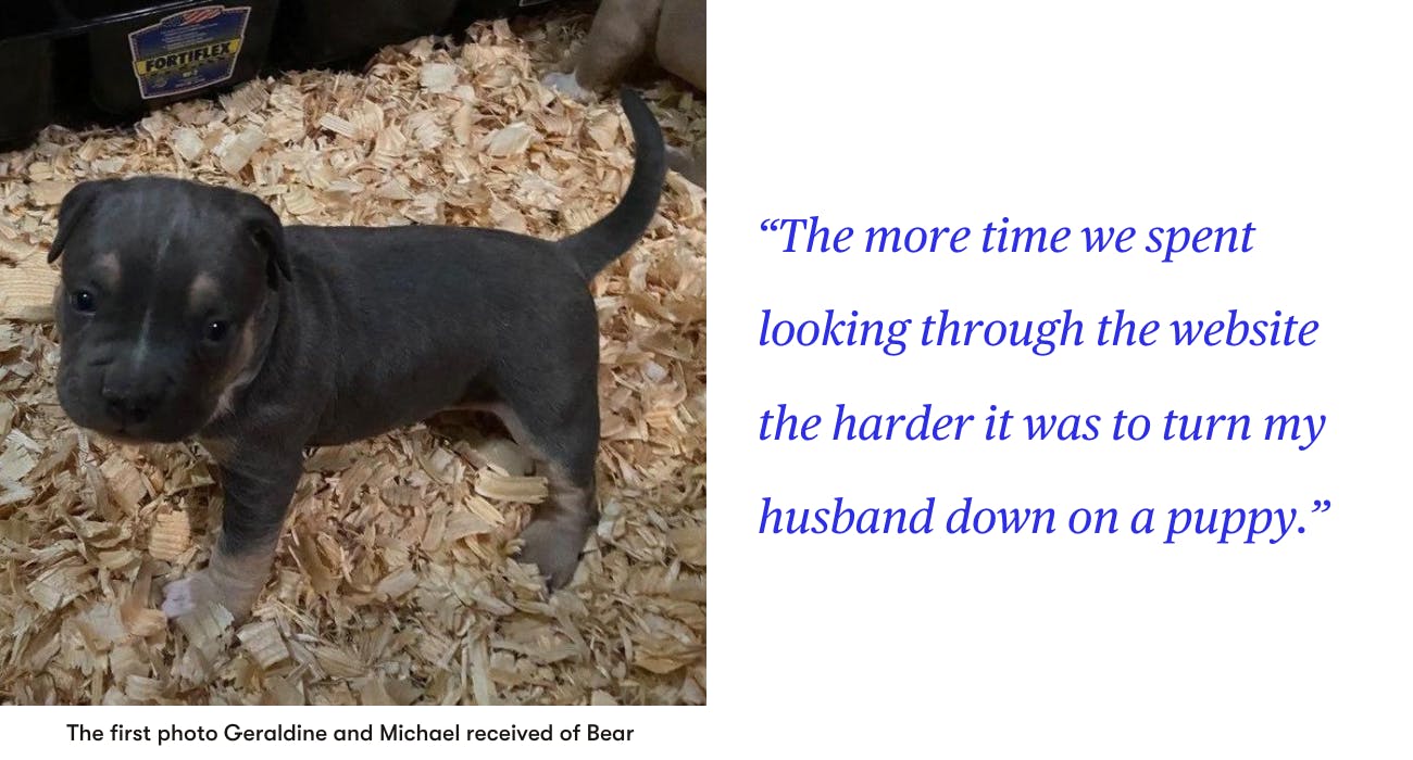 “The more time we spent looking through the website, the harder it was to turn my husband down on a puppy,” she said.
