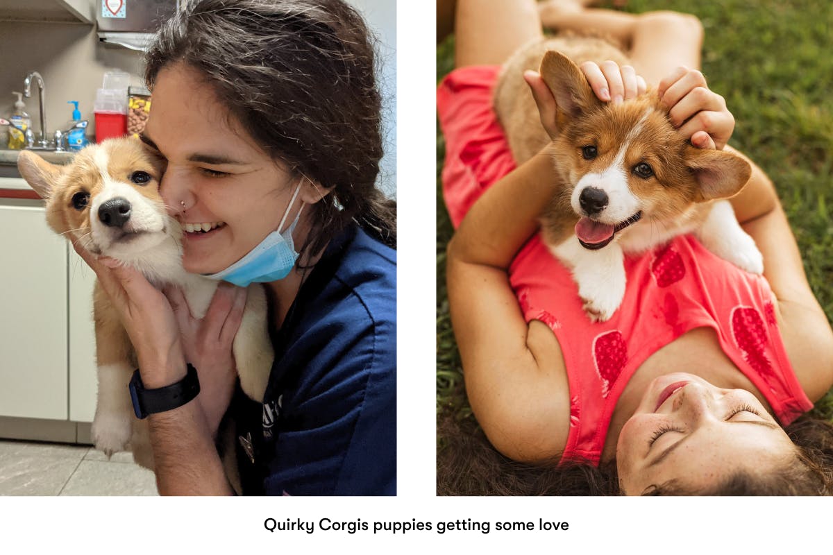 Early training is a huge part of the puppy-raising process at Quirky Corgis. Responsible breeders understand that training at a young age can make all the difference in a puppy’s transition to their new family. Before the corgis pups go off to their forever homes, Quirky Corgis provides regular nutritional, developmental, and veterinary care, as well as robust socialization training. “After the puppies are able to explore our home, we introduce them to new friends,” Quezada said, describing their typical training methods. “They receive socialization from dog-friendly cats, large breed dogs, and other humans to help them see the diversity in the world they've been born into … We also introduce sounds and objects during their developmental stages to help them gain confidence in things that would typically cause anxiety to dogs in general.”