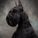A black Miniature Schnauzer stands out against a rainbow painted wall