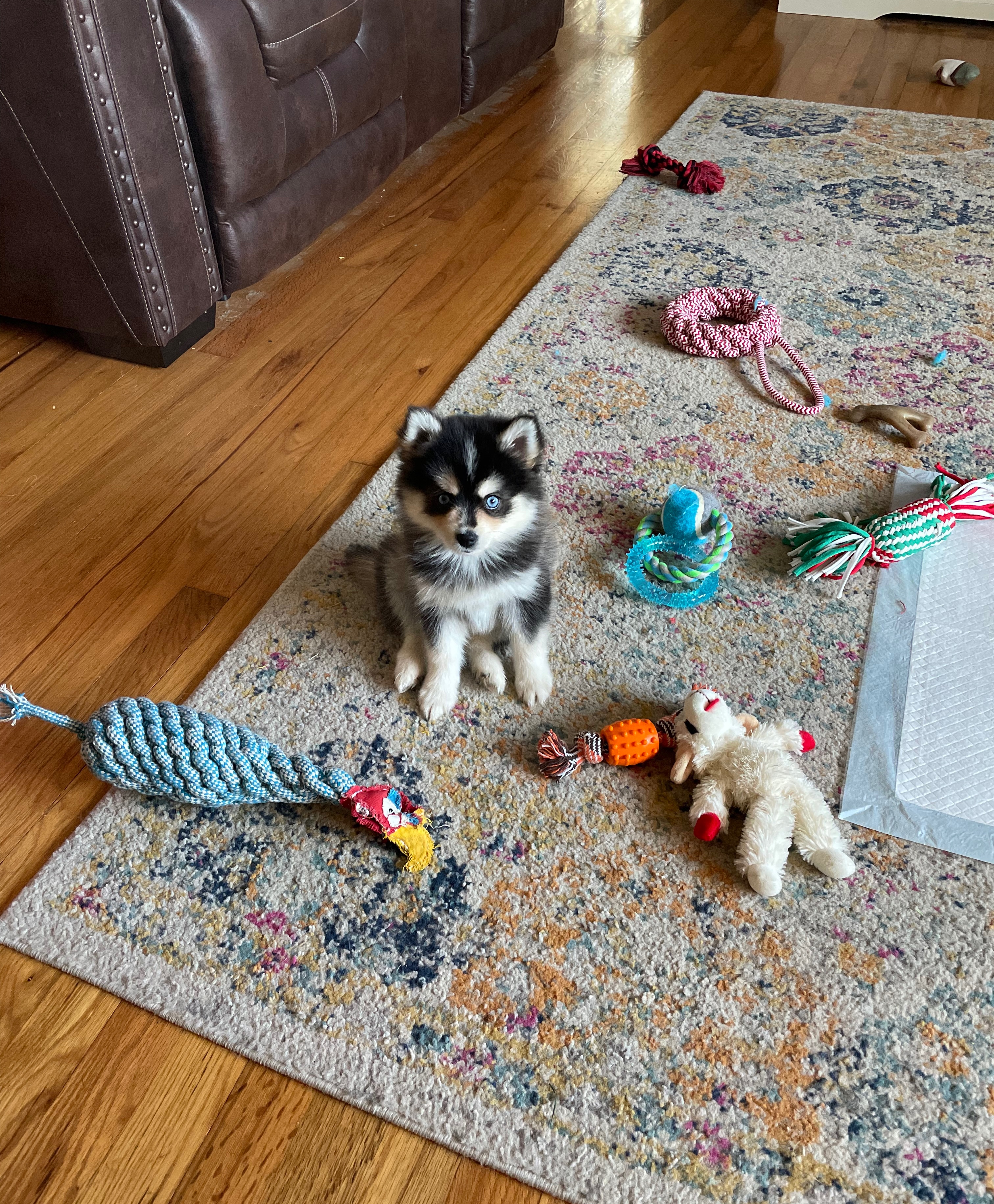 We recommend speaking directly with your breeder to get a better idea of the expected size of your Pomsky puppy.