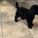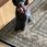 A Poodle gets pets from its owner while another poodle is walking toward them in the background.