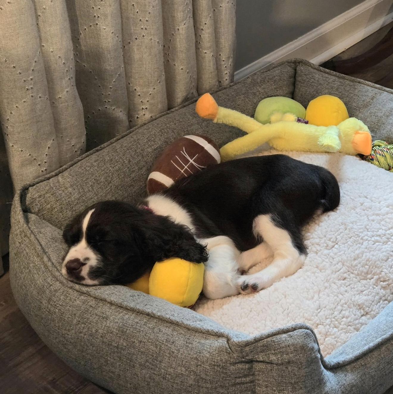 Springerdoodle puppies in Anderson, IN tend to have moderate energy. Typically, dogs with a moderate energy level may require around 30 to 60 minutes per day of physical activity, though individual dogs may fall outside that range.