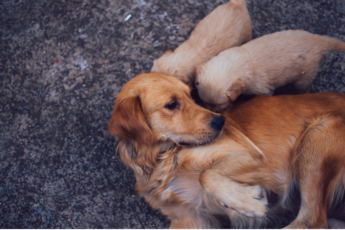 Q: My dog just delivered 17 puppies, and this is her first litter. She was exhausted after 12 pups and the vet induced labor 2 times to get the last 5 out, 2 were still born and 1 had the intestines outside his body and was euthanized, 5 were underweight and have passed away despite bottle feeding in between, and then 1 she laid on and smothered. She won't eat, and is throwing up. No fever. Is there anything you recommend to offer her to eat?